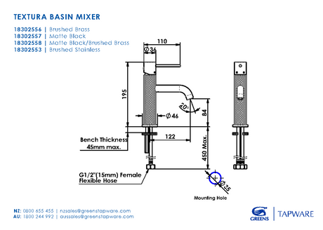 $685.00$858.00Unit price /UnavailableGreens Textura 18302553 Basin Mixer - Brushed Stainless