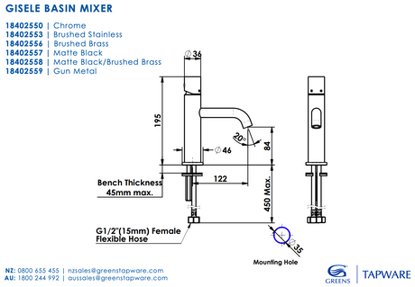 $298.00$339.00Unit price /UnavailableGreens Gisele 18402553 Basin Mixer - Brushed Stainless
