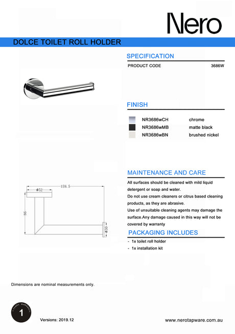 $57.00$77.00Unit price /UnavailableNero Dolce Toilet Roll Holder Chrome NR2086CH