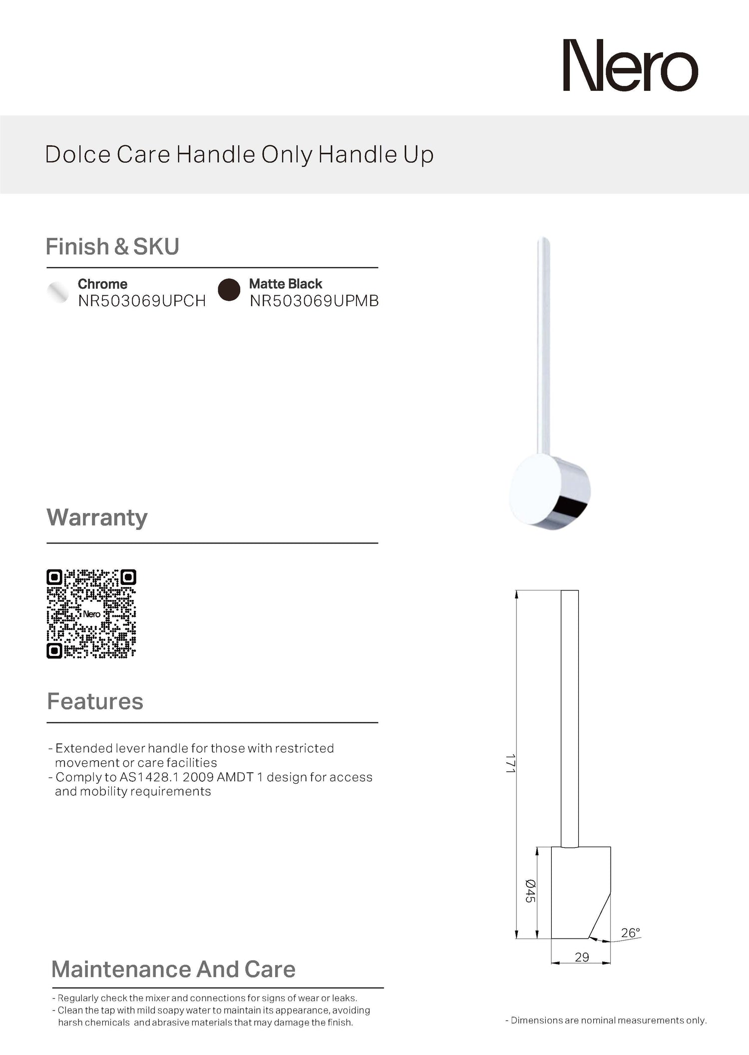 Nero Dolce Care Handle is available in Chrome or Matte Black finish.