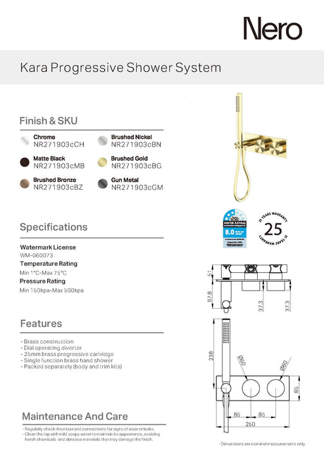 $1,237.00$1,650.00Unit price /UnavailableNero Kara Progressive Shower System Brushed Gold NR271903CBG