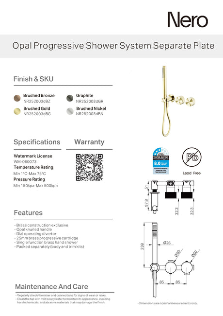 $1,360.00$1,815.00Unit price /UnavailableNero Opal Progressive Shower System (Separate Plates) Brushed Bronze NR252003DBZ