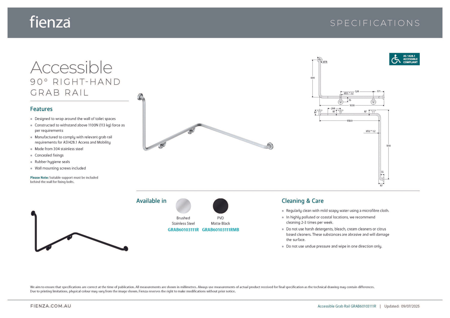 • Manufactured to comply with relevant grab rail requirements for AS1428.1 Access and Mobility