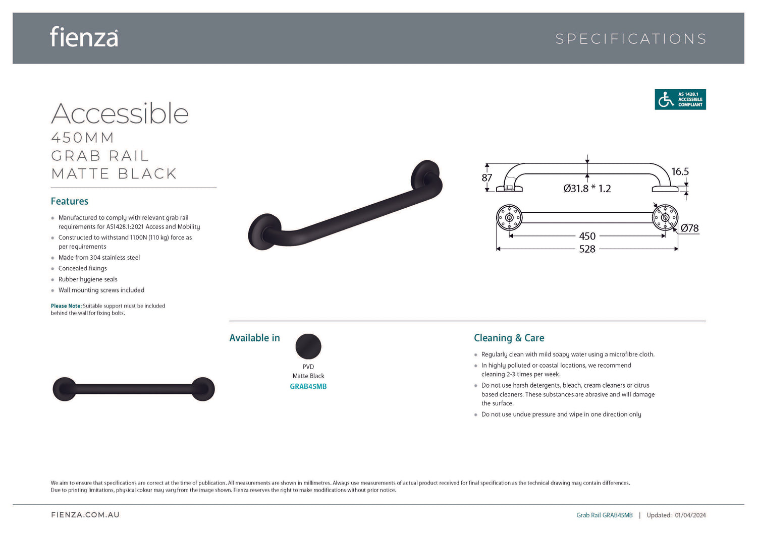 • Manufactured to comply with relevant grab rail requirements for AS1428.1:2021 Access and Mobility