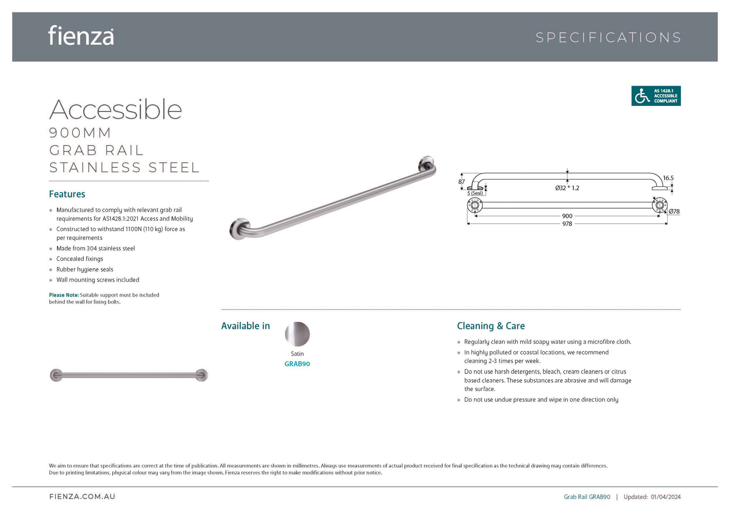 - Manufactured to comply with relevant grab rail requirements for AS1428.1:2021 Access and Mobility