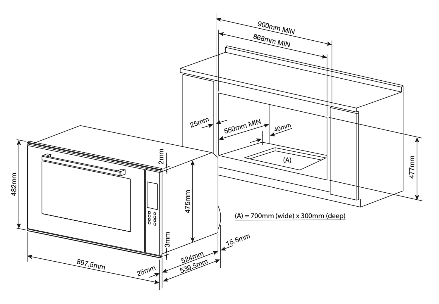 Height: 482mm x Width: 898mm x Depth: 564.5mm
