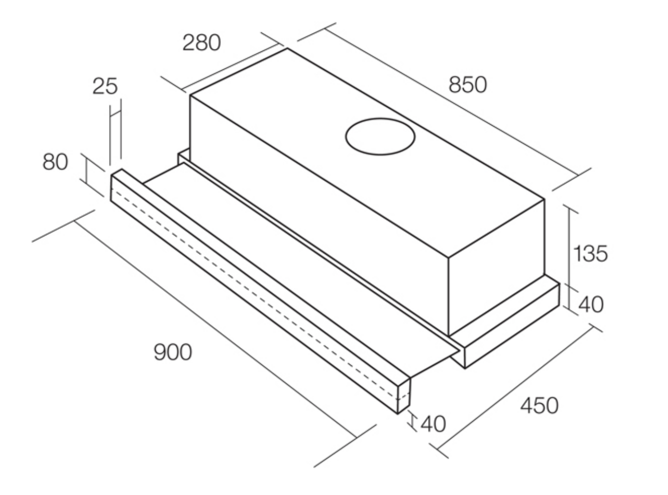 Height: 175mm x Width: 900mm x Depth: 305-450mmmm