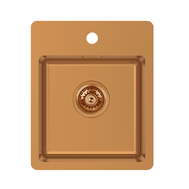 Abey Single Bowl Stainless Steel Bar Sink, 370x450mm, Topmount with Taphole, Artisan Copper BS2CO
