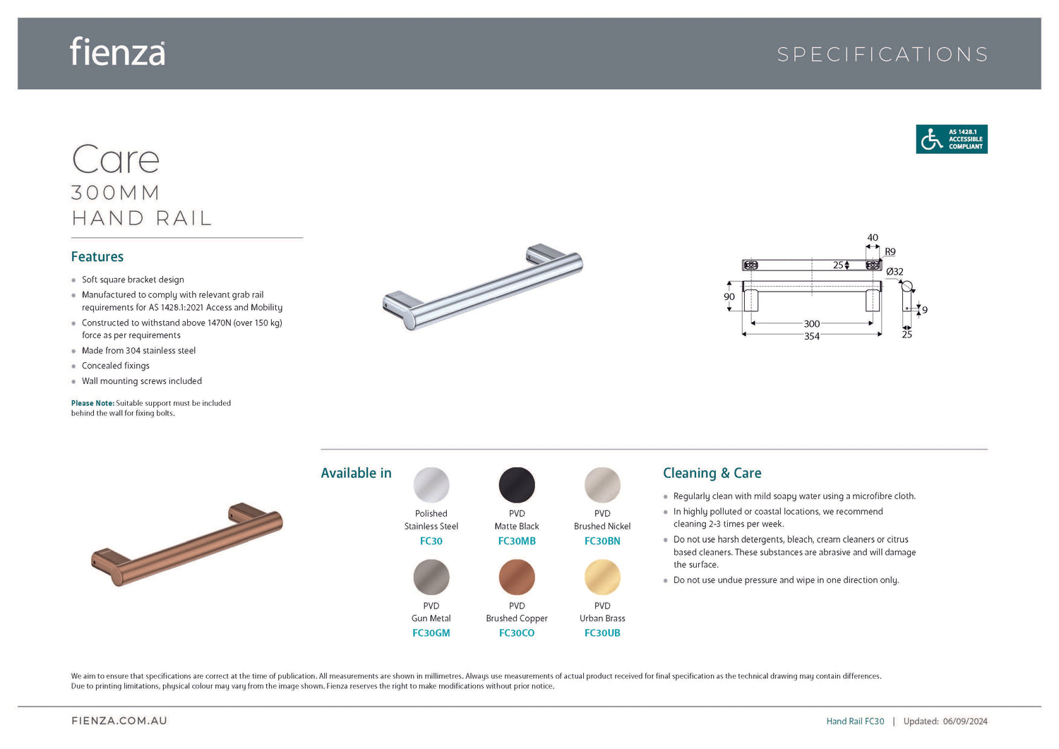 - Manufactured to comply with relevant grab rail requirements for AS 1428.1:2021 Access and Mobility