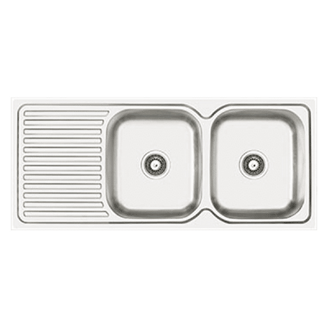 Abey Entry Sink Double Bowl 1140x480mm Topmount Right Bowl 1 Taphole with Drainer Stainless Steel EN200R