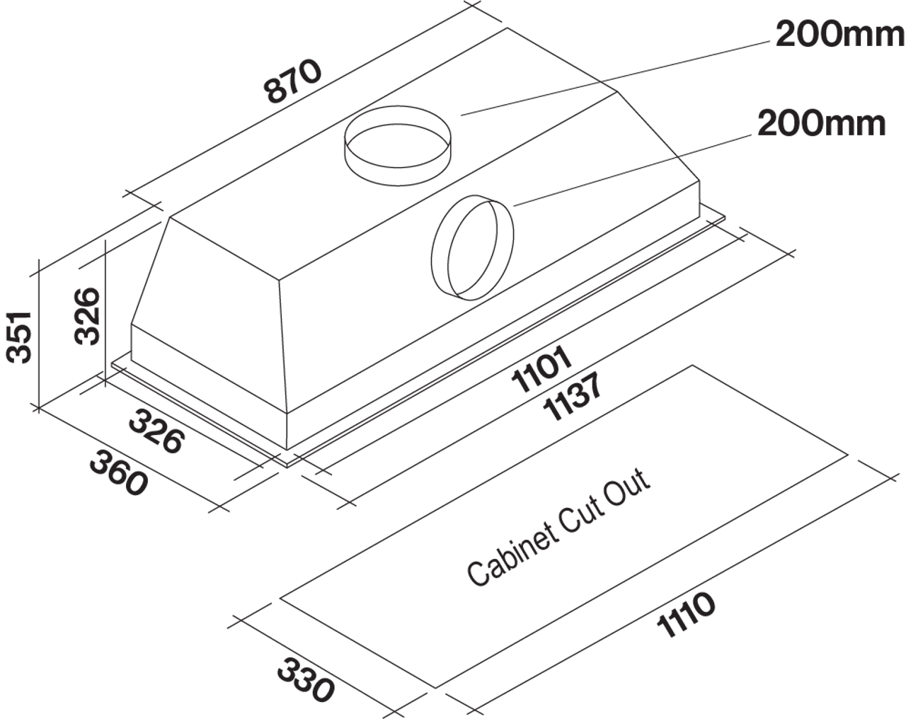 - Cut-Out Size: 1110 x 330mm