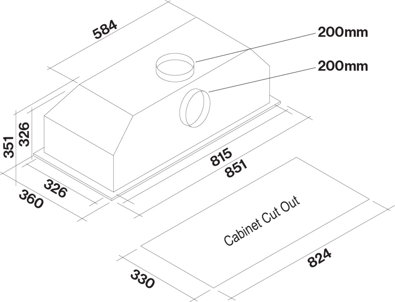 - Ducting: 200mm circular outlet (6m of Q6 duct supplied)