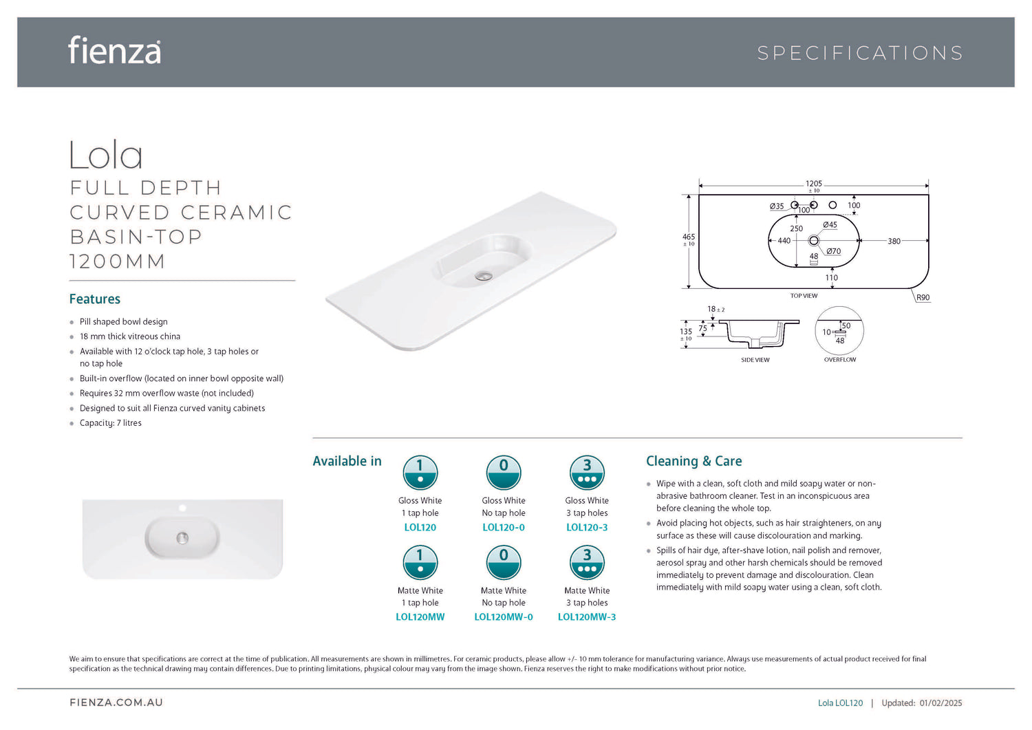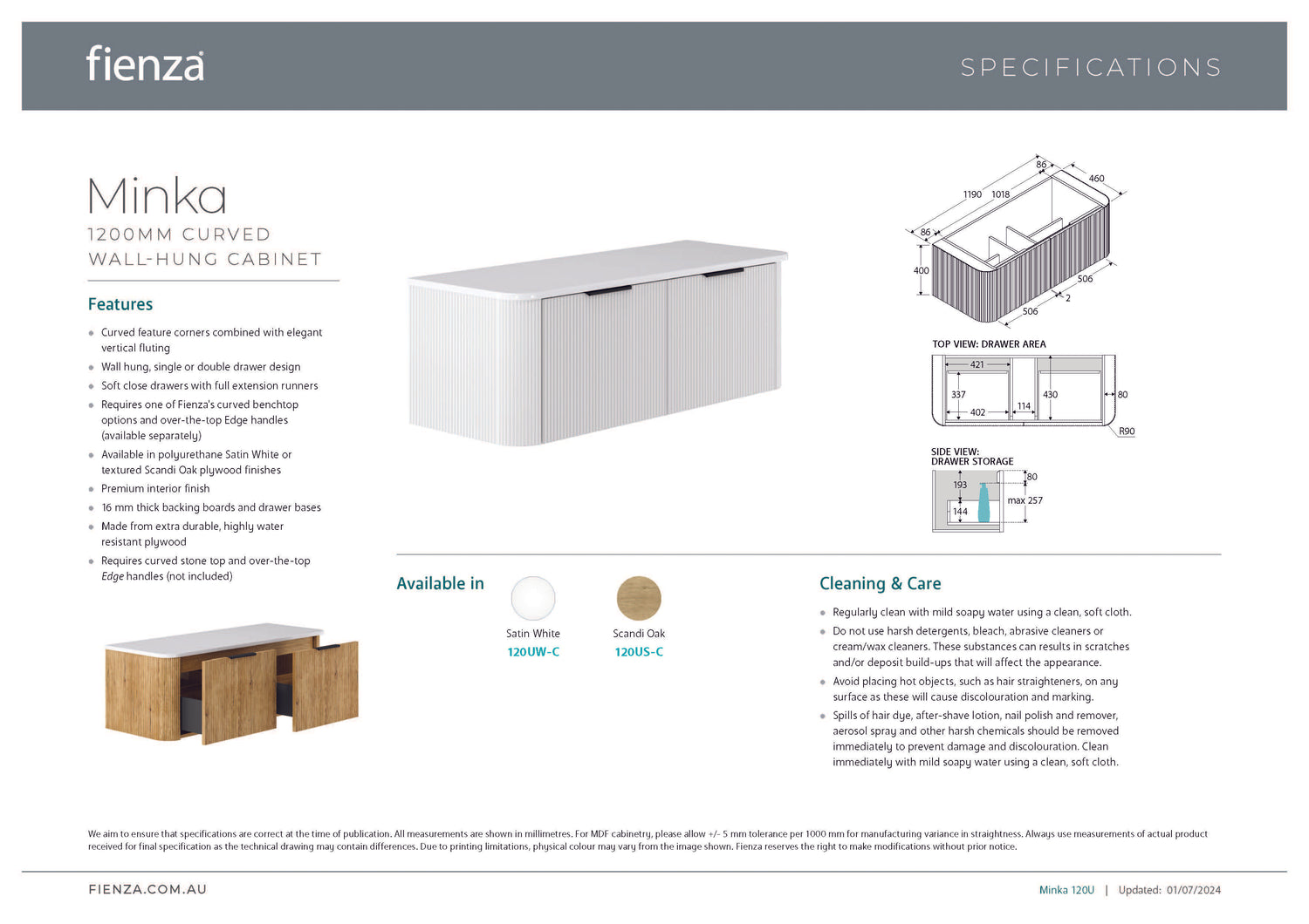 - Requires one of Fienza's curved benchtop options and over-the-top Edge handles (available separately)