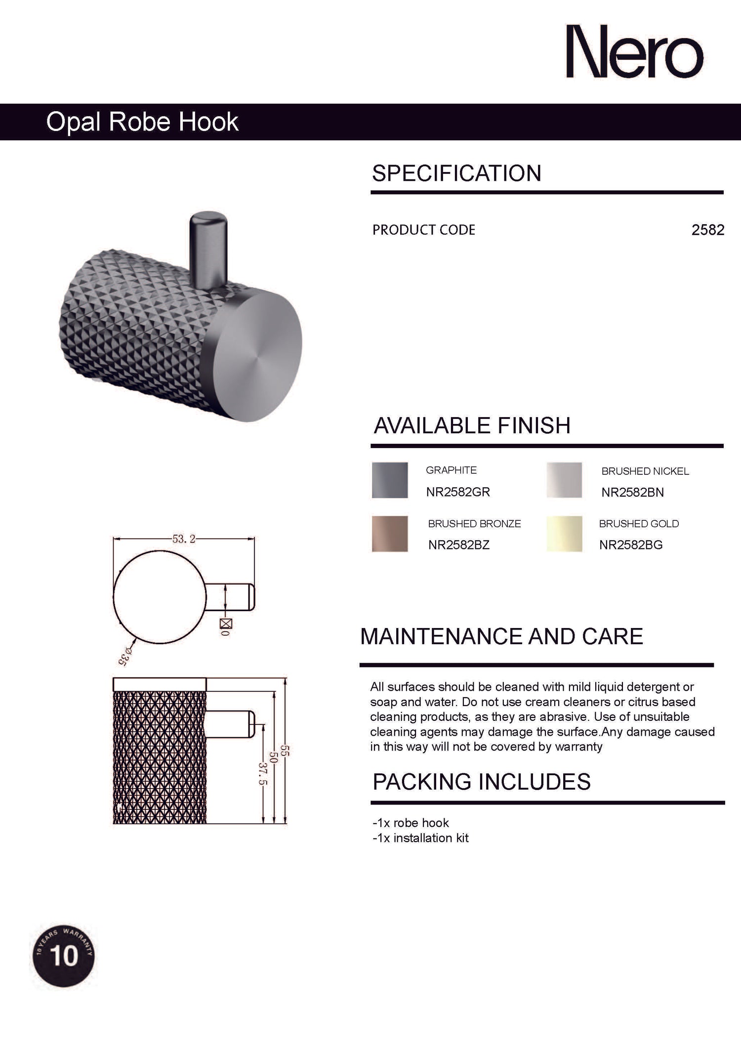 Nero Opal Robe Hook is classic and durable, yet beautiful.