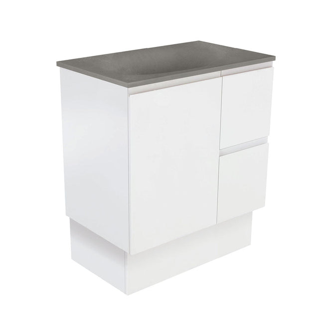 Fienza SAT75ZKR Satori Fingerpull On Kickboard Vanity, 750mm, Right Drawers, Satin White
