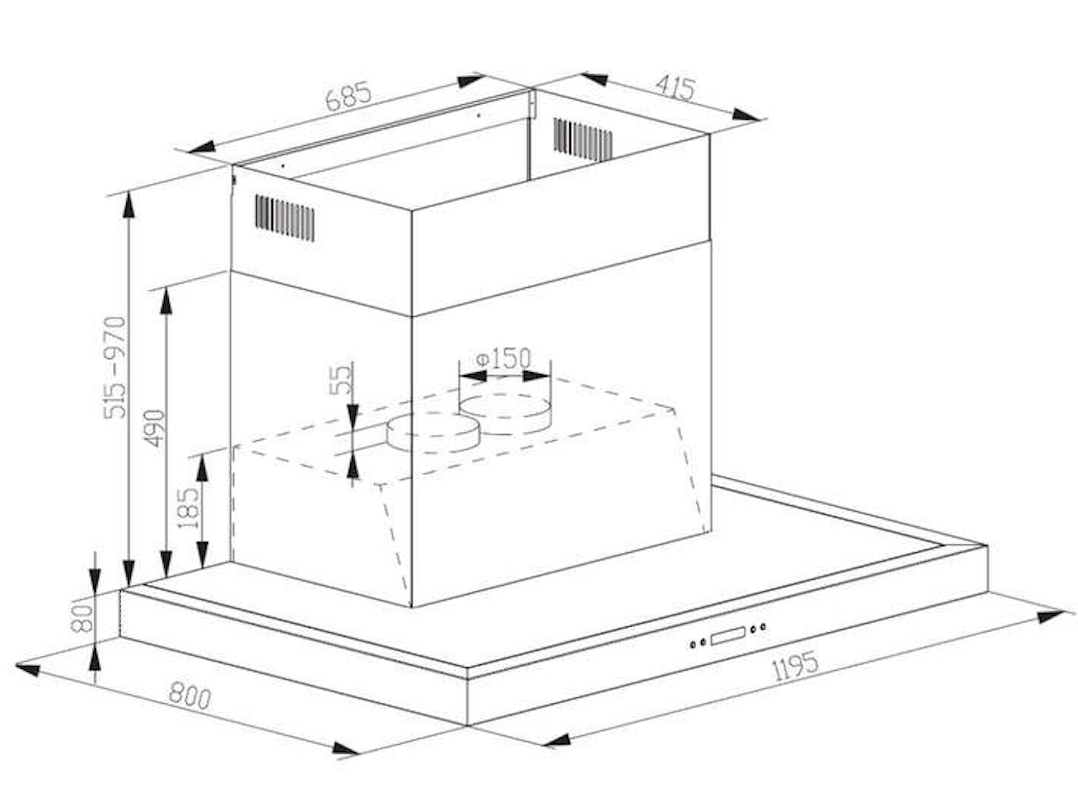 Height: 595mm - 1050mm x Width: 1195mm x Depth: 800mm